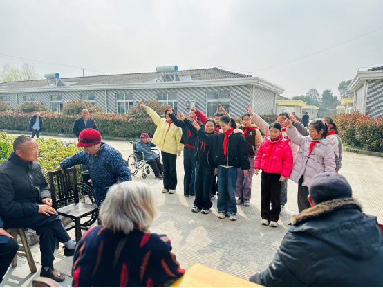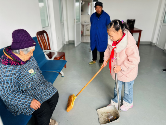 活动现场,孩子们化身“小小志愿者”,用稚嫩的双手和真诚的笑容,为养老院增添了浓浓的暖意。有的同学围坐在老人身边,为他们捶背揉肩、轻声交谈,耐心倾听老人们讲述过往的故事,用童真的话语驱散老人的孤独;有的同学拿起扫帚、簸箕,认真打扫房间和庭院,用劳动为老人们营造干净整洁的生活环境;还有的同学精心准备了歌舞、手势舞等节目,欢快的节奏、灵动的舞姿让老人们脸上绽放出欣慰的笑容,现场掌声阵阵、暖意融融。