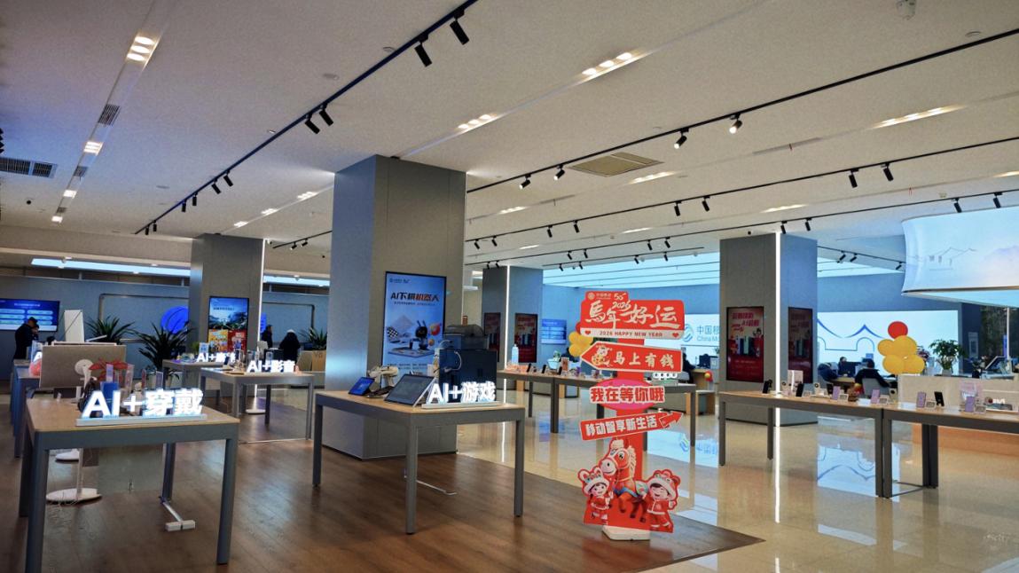 作为扬州城区的核心服务窗口,邗江文昌西路旗舰服务厅以“科技+服务”为核心,构建起高效协同的生态。移动臻选专区汇聚全市优质特色产品,冶春包子C位出道,搭建起政企合作的展示桥梁。针对政府单位,这里设置了“政企服务专窗”,提供定制化通信解决方案、智慧办公部署等一站式服务,成为政企协同的“绿色通道”;面向市民,AI数智区的机器人互动、智能穿戴设备体验、全屋智能场景演示等科技展陈,让百姓直观感受数字生活的便捷。 “以前办政企业务要跑多个部门,现在在移动服务厅就能一站式对接,还能顺便体验最新的智能产品,太方便了!”某企业行政负责人王女士点赞道。新春期间,厅内以红色窗花、主题挂布营造出浓厚节日氛围,电视会员、云PAD等核心产品演示到位,让市民切实享受优惠。这里既是政府政务服务的延伸触点,也是百姓数字生活的体验乐园,实现了政企服务与民生需求的同频共振。