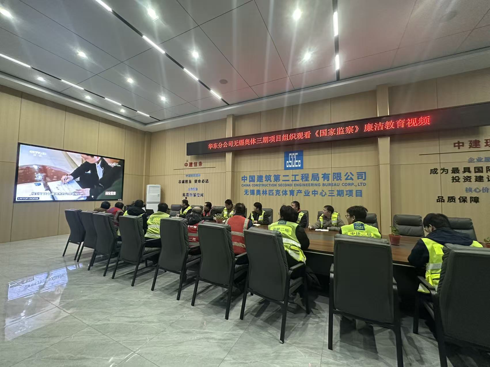 为深化党风廉政建设,增强全员廉洁自律意识,中建二局无锡奥林匹克体育产业中心三期项目近日组织全体职工及党员集中观看《国家监察》廉洁教育视频,以真实案例为镜鉴,敲响廉洁警钟,为项目高质量建设注入“廉动力”。
