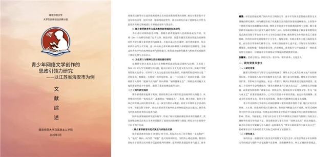 摘要:网络文学是新大众文艺的重要载体,连接着大众创作与文化传播。青少年作为网文创作的重要群体与后备力量,其创作涉及价值观的塑造与文化传承创新。为填补青少年网络文学中的思政缺口,助力网络文学繁荣发展,2026年寒假期间,南京师范大学马克思主义学院“文心引领,思育新人”——青少年网络文学创作的思政引领力调研团以海安为核心开展实践调研,力求形成可推广的思政引领网文发展新方案,以正能量网文滋养青春、传承文化。