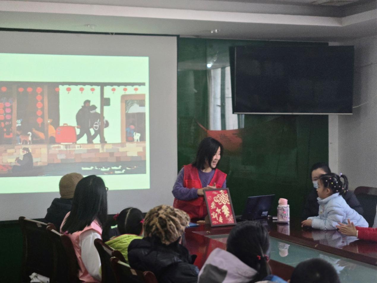 活动伊始,绘本讲读环节温情启幕。邀请专业的故事老师,PPT放置经典绘本《团圆》,带领现场退伍军人、军属及孩子们沉浸式走进绘本世界。讲述了故事中爸爸常年在外奔波、春节回家与家人团圆的温馨情节,既描绘出寻常家庭团圆的珍贵,也触动了退伍军人们心底的家国情怀与亲情牵挂——曾经他们保家卫国、坚守岗位,如今褪去戎装,更懂团圆的深意。现场氛围温馨融洽,孩子们听得聚精会神,退伍军人们也不时驻足沉思、温情回应,在倾听与交流中,大家一同深刻理解了“团圆”的意义,也在心中种下了感恩、陪伴与爱国的种子。