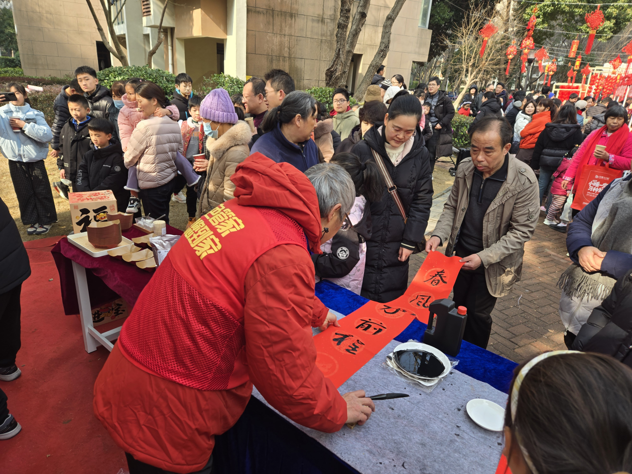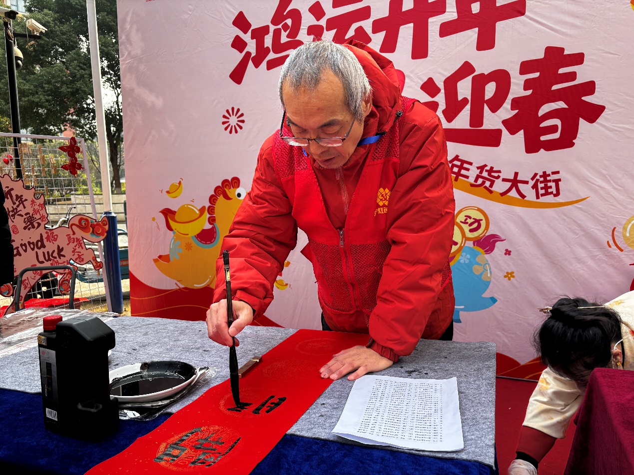 写春联,成为传承年味、寄托祝福的重要载体。特别邀请了园区书法协会现场挥毫泼墨,为居民送上新春的美好期许一幅幅笔力遒劲、寓意吉祥的春联跃然纸上,“马到成功添吉庆,春归大地纳安康”“福满家门迎瑞气,喜盈社区贺新春”,红底黑字的春联承载着对新年的期盼、对邻里的祝福,也彰显着中华传统文化的深厚底蕴。居民们有序排队,或静静观赏书法创作,拿到专属春联的居民们喜笑颜开,纷纷表示,手写春联比印刷春联更有年味,也承载着社区的暖心关怀。