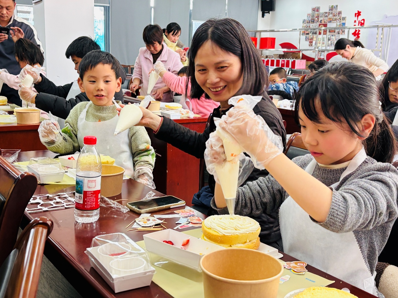 活动现场布置温馨雅致,工作人员提前备好新鲜食材、香甜的饼干、烘焙工具与精美包装,让到场居民快速融入轻松愉悦的氛围。活动开始后,专业烘焙老师耐心讲解蛋糕制作流程,从食材配比、搅拌揉制,到塑形装饰、烘烤细节,每一步都细致示范、手把手指导,帮助大家快速掌握技巧。居民们热情高涨,无论是大人还是孩子,都全神贯注地动手操作,互相帮忙、交流心得,现场欢声笑语不断,甜蜜气息弥漫整个活动空间。