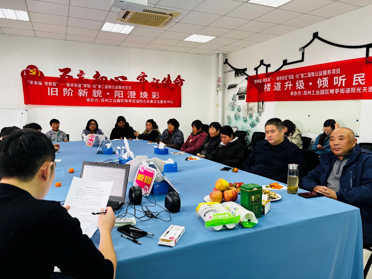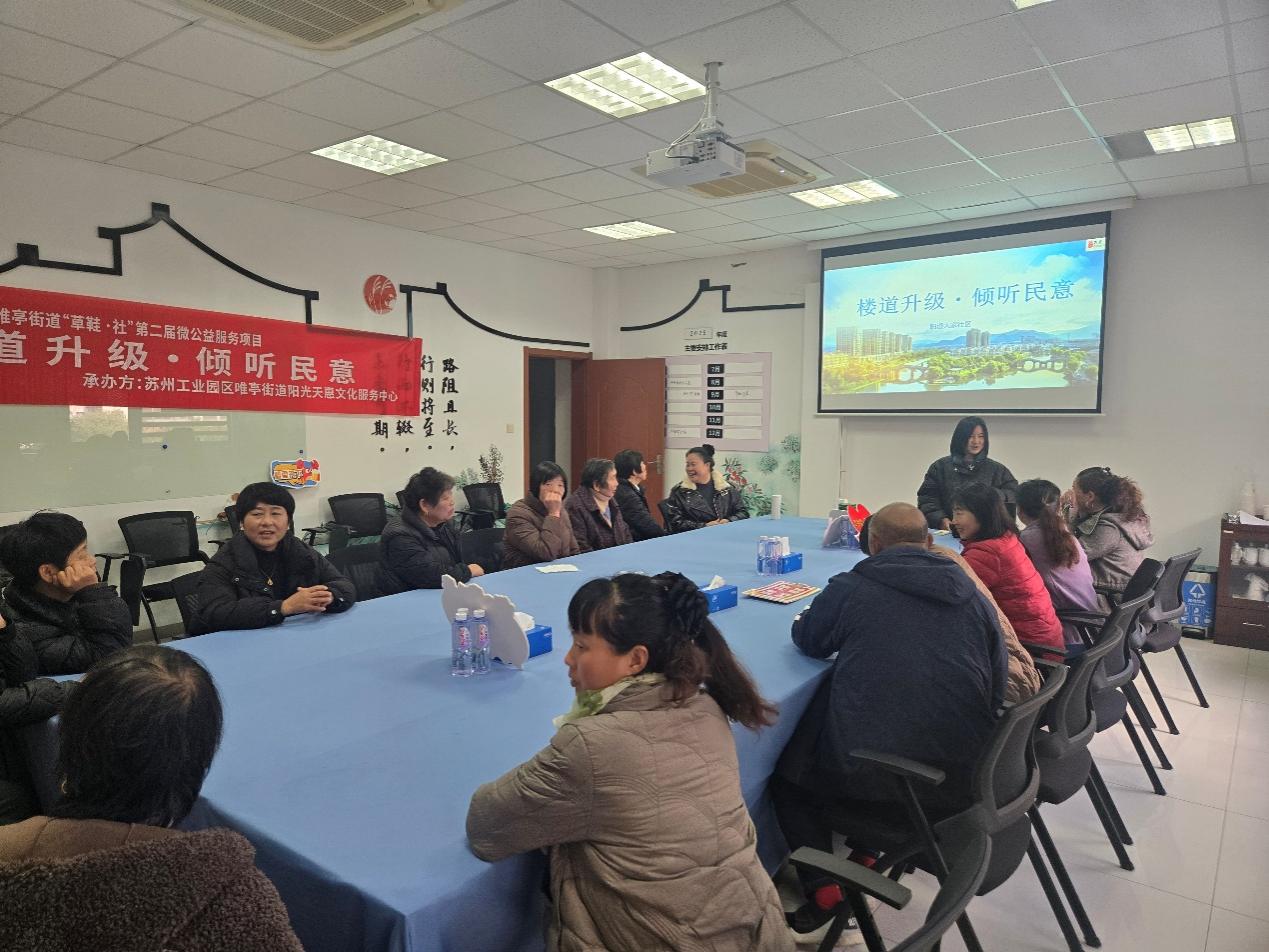 楼道是居民出行的“必经之路”,是社区治理的“神经末梢”,更是彰显邻里温情、展现社区风貌的重要窗口,作为苏州工业园区阳澄半岛旅游度假区的动迁安置区,阳澄人家社区承载着居民对宜居生活的美好期盼,但其部分楼道因建成年限较长,出现墙面斑驳、管线杂乱、设施老化、杂物堆积等问题,既影响居住环境美观,也给居民日常生活带来不便。为切实破解楼道治理痛点,精准对接居民需求,让楼道升级工程真正贴合民心、惠及民生,苏州工业园区唯亭街道阳光天惠文化服务中心精心策划2025年第二届微公益--“澄里拾遗---阳澄湖楼道文化营造项目 “阳澄人家社区楼道升级・倾听民意”系列活动分层推进,通过五场循序渐进、重点突出的活动,广泛汇聚居民智慧,凝聚共建共治共享合力,为后续楼道改造工作筑牢民意根基。
